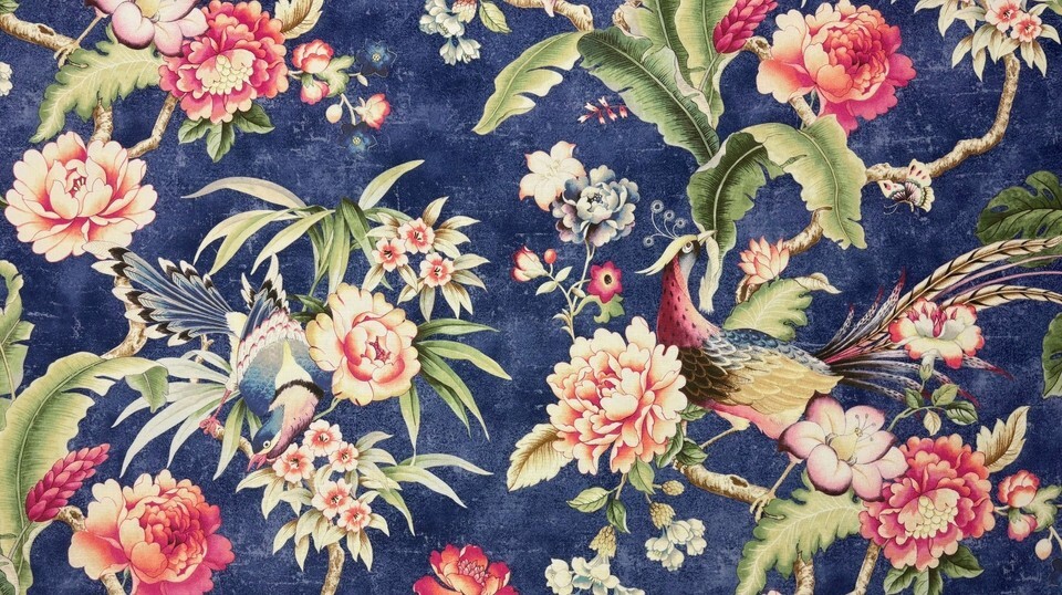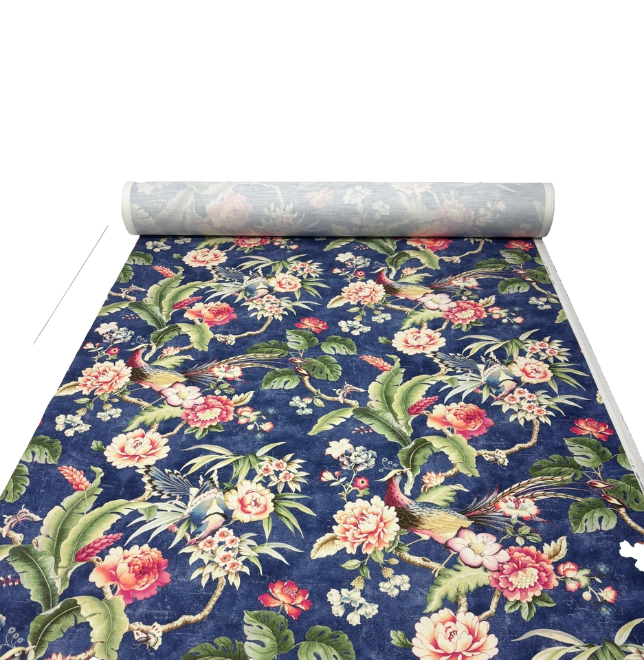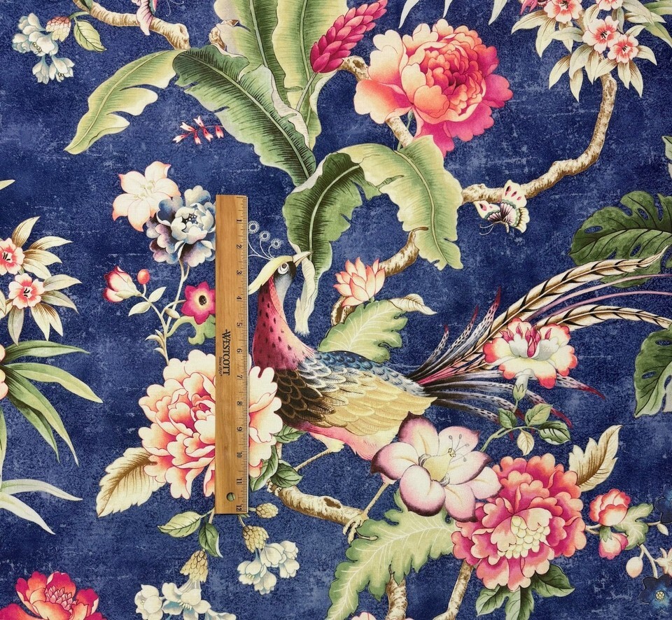 P KAUFMANN PASSERINE PAVILLION MIDNIGHT BLUE BIRD FLORAL FABRIC BY YARD 54"W