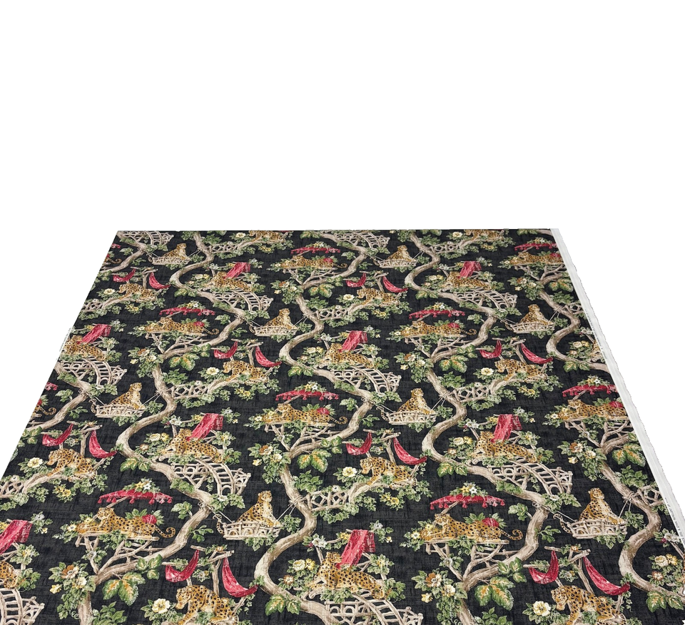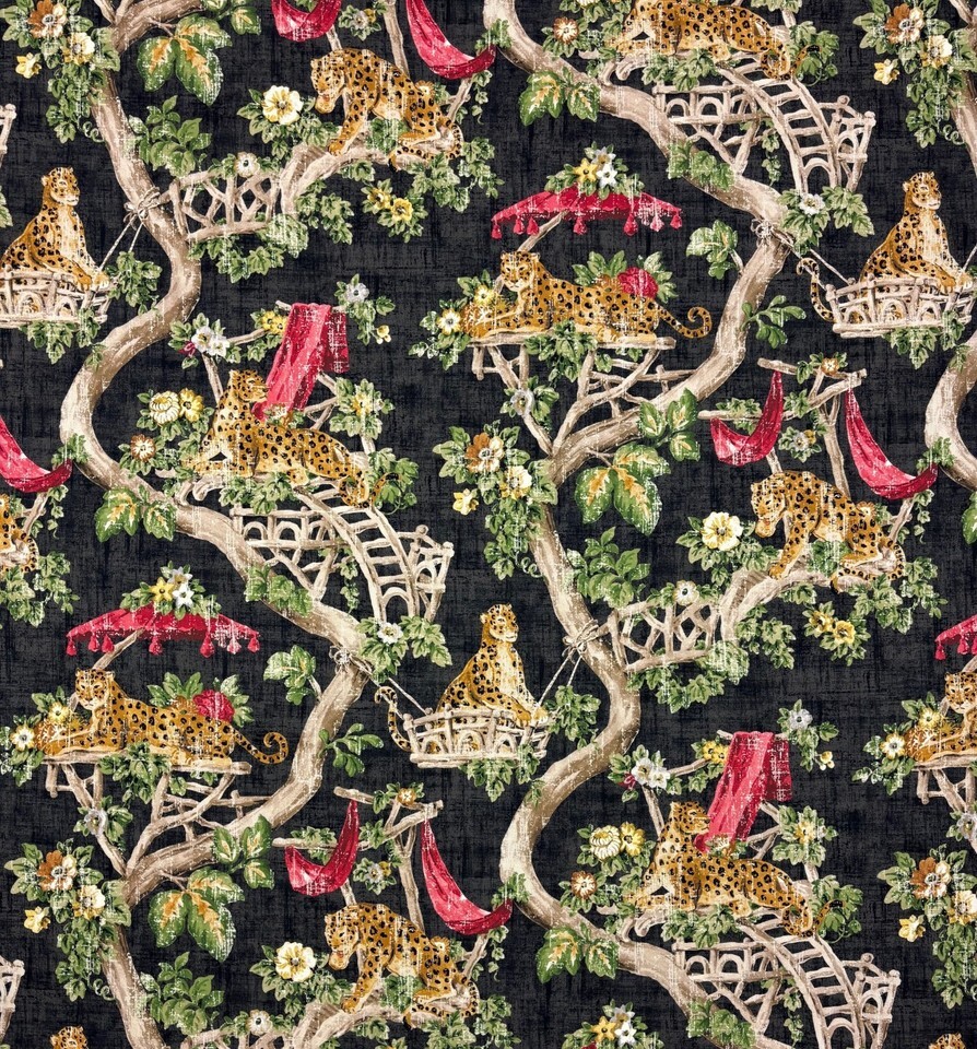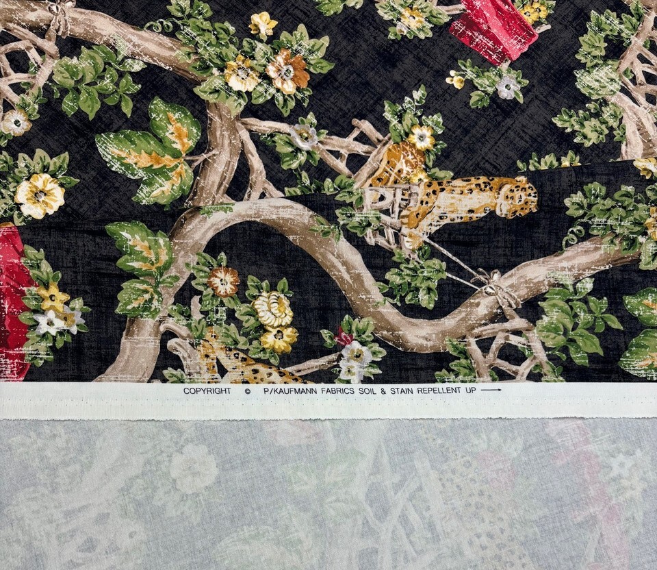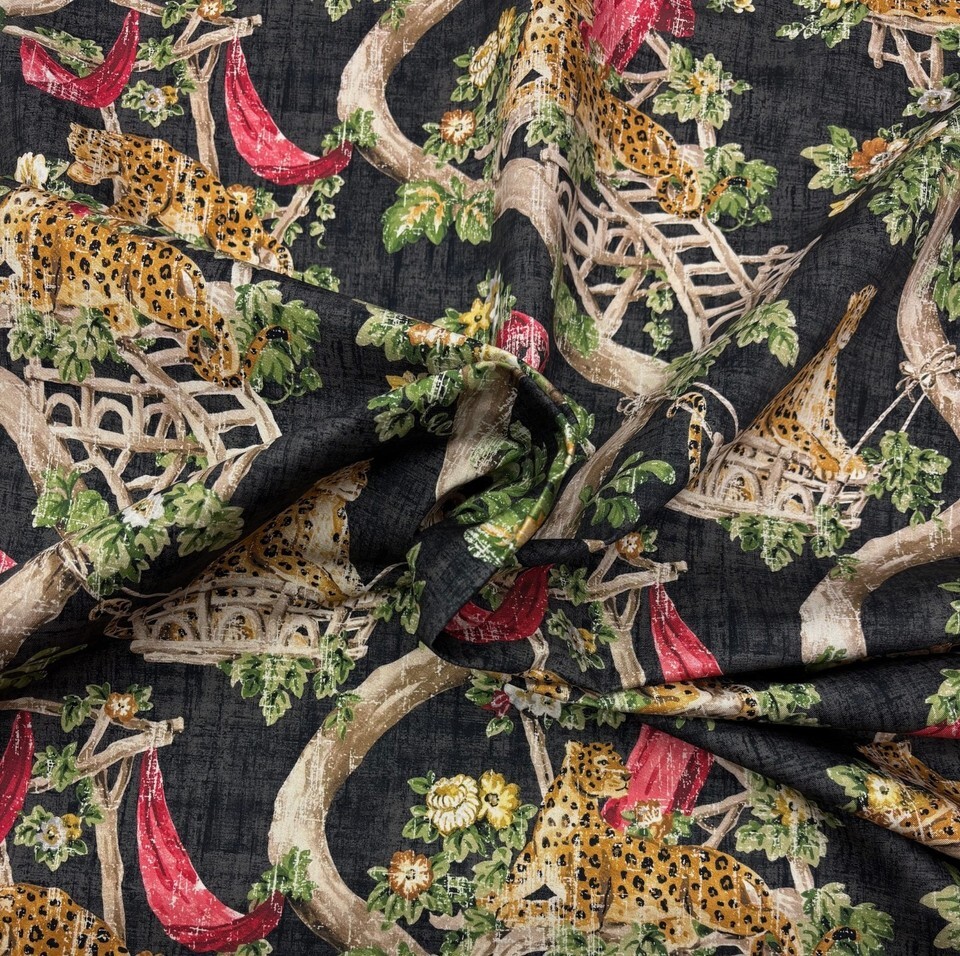 P KAUFMANN LAZY DAYS CARAWAY BLACK LEOPARD TOILE COTTON FABRIC BY YARD 54"W