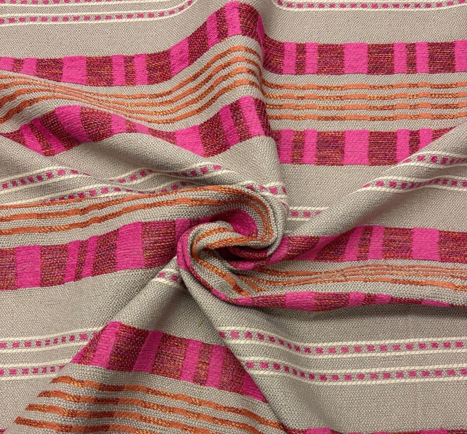 BALLARD DESIGN BRUMAGE PINK ORANGE InsideOut® STRIPED FABRIC 1.25 YARDS 54"W