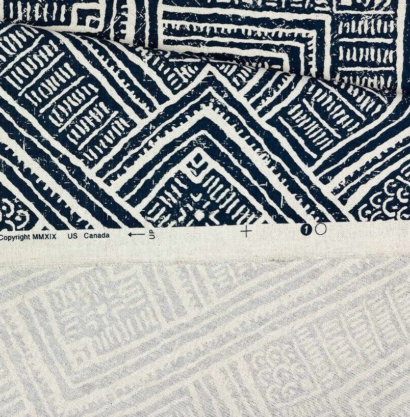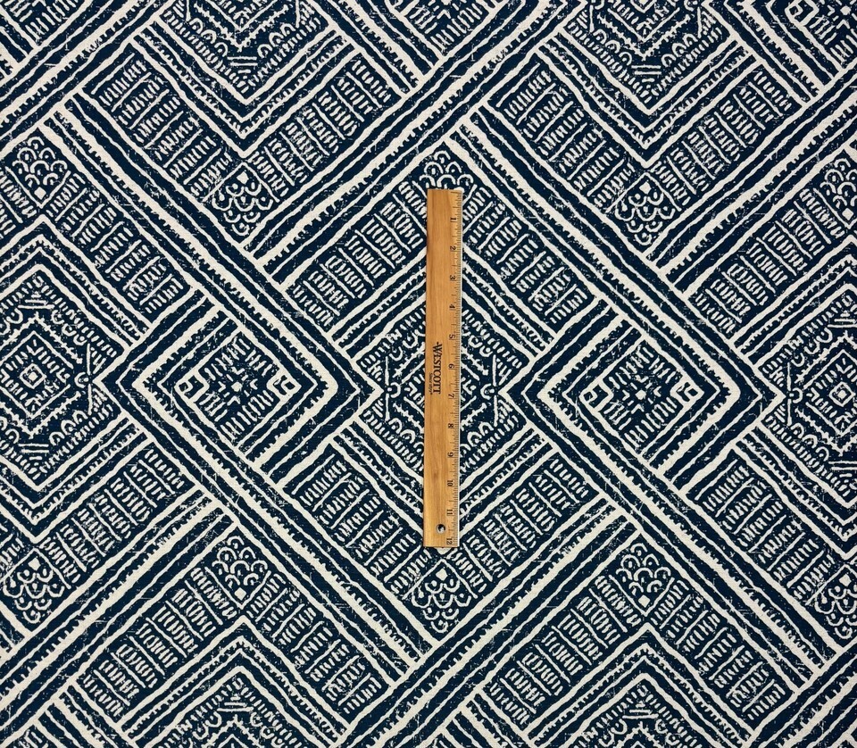 CAROLE TILE WALK INDIGO BLUE LARGE GEOMETRIC DESIGNER FABRIC BY YARD 54"W