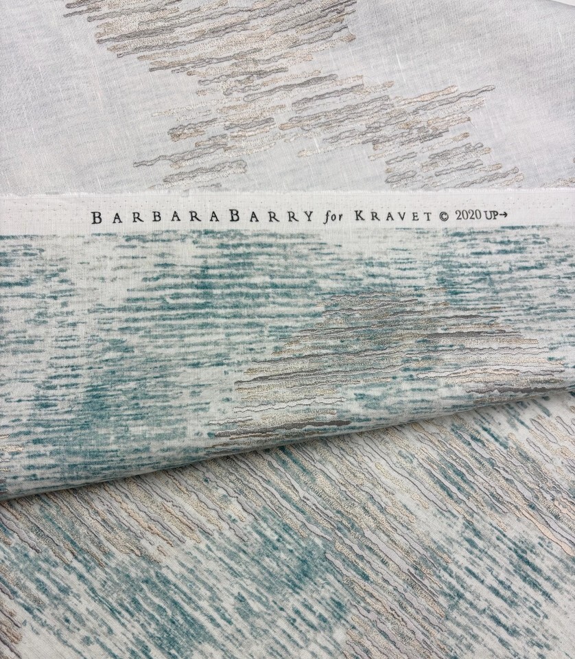 KRAVET SHIMMERSEA OASIS BLUE EMBROIDERED EXCLUSIVE DESIGNER FABRIC BY YARD 54"W