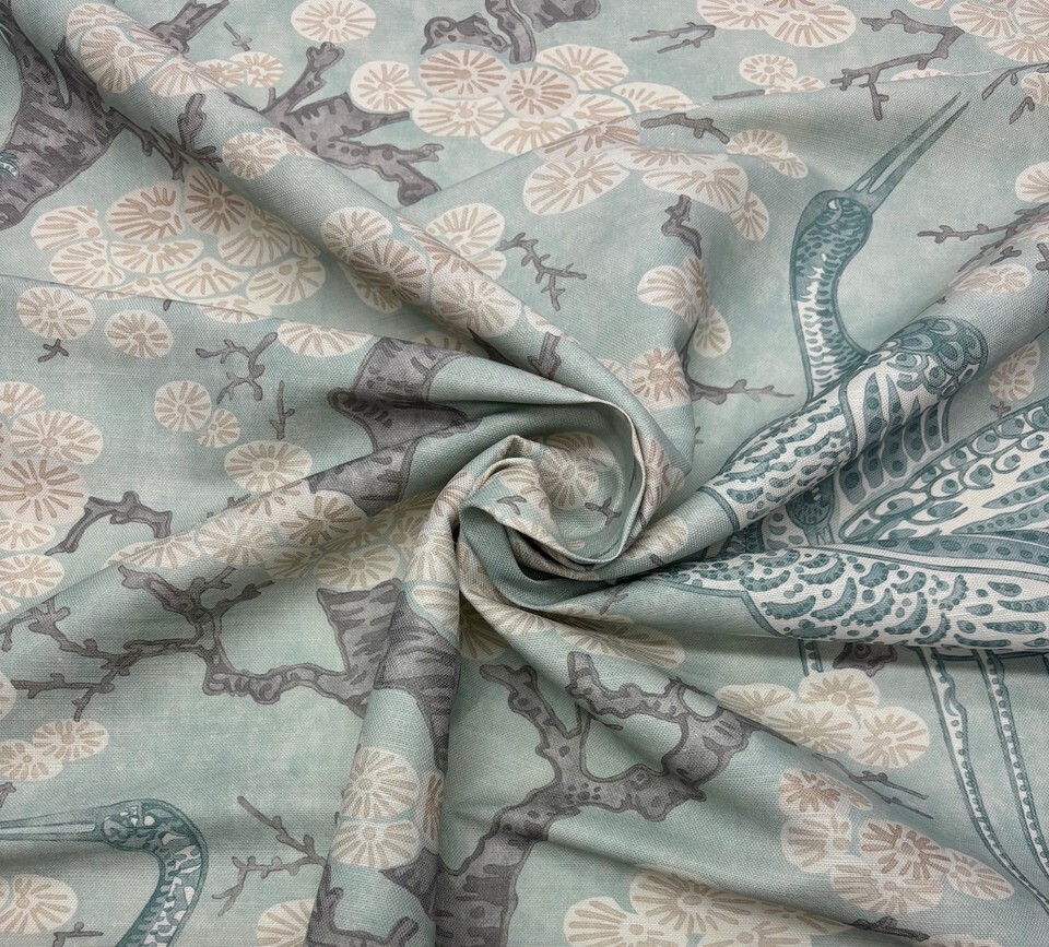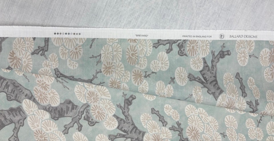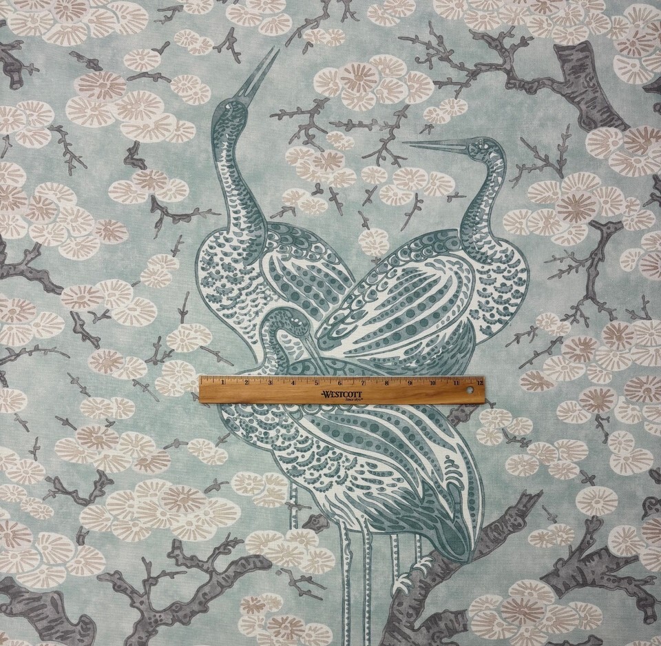 BALLARD DESIGNS BREVARD TEAL BLUE LARGE BIRD DESIGNER LINEN FABRIC BY YARD 54"W
