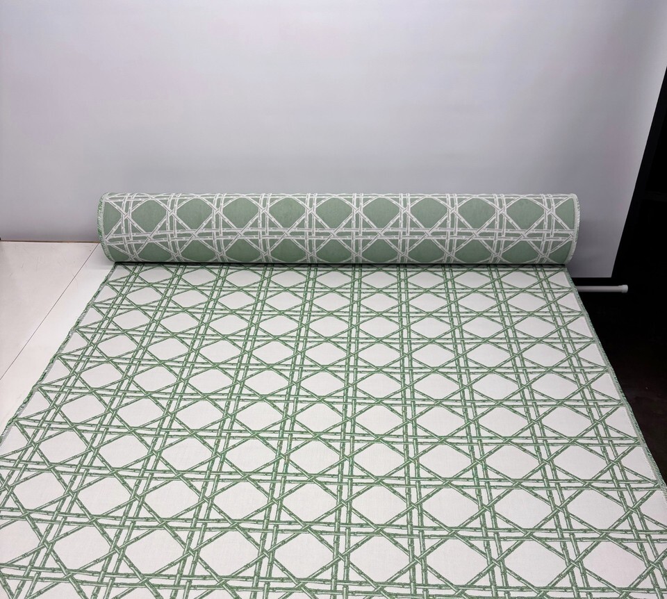 SUNBRELLA 145218 REIGN KELLY GREEN BAMBOO RATTAN JACQUARD FABRIC BY YARD 54"W
