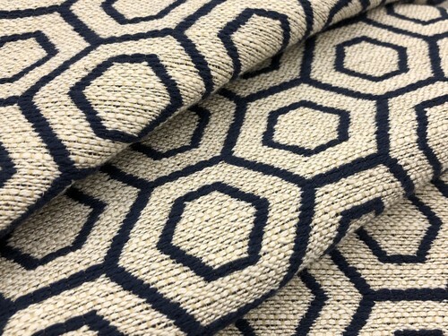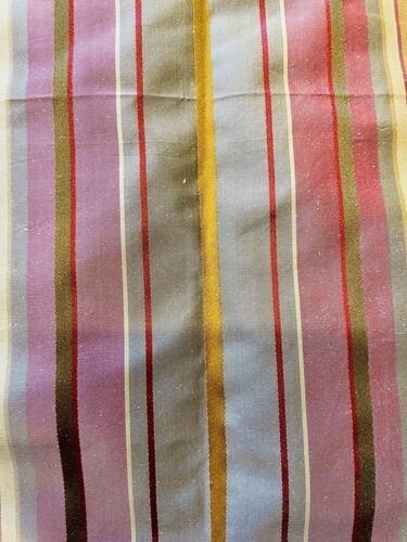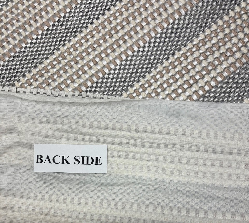 Fabric Weight Style: Heavy Weight Woven in a Thick Blend of Thick Thread and Metallic Vinyl Type Stripes