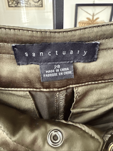 Anthropologie Sanctuary Satin Cargo Pants Wide Leg or Jogger Green 28