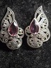 A GIFT BOX AND BAG WILL BE INCLUDED WITH EVERY ITEM PURCHASED DURING THE HOLIDAY SEASON.Lovely 925 Sterling Silver with marcasite and amethyst dangles. Measure 2.1" by 0.4" wide. Light tarnish due to age. Quality made. These are adorable and a great addition to your collection.