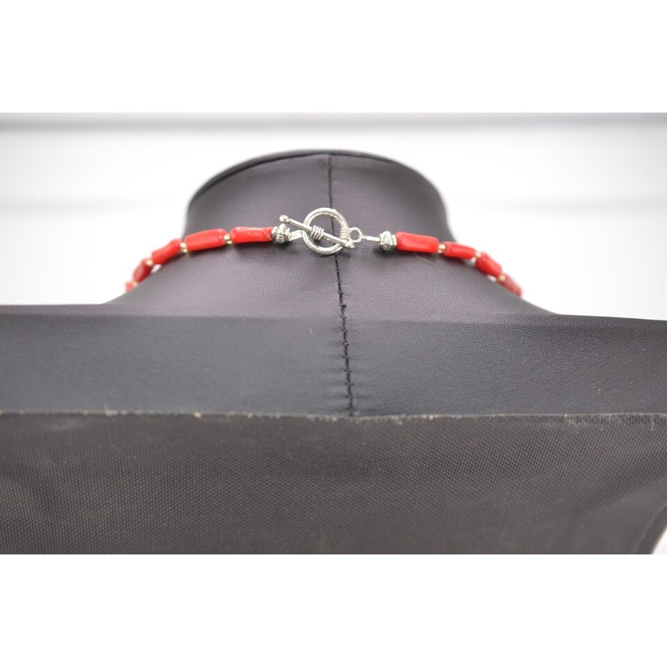 A GIFT BOX AND BAG WILL BE INCLUDED WITH EVERY ITEM PURCHASED DURING THE HOLIDAY SEASON.Vintage Red Coral Native American Necklace. 18 inches long with toggle clasp. Pendant is 0.9" x 0.8". Beautiful look and wonderful to layer.