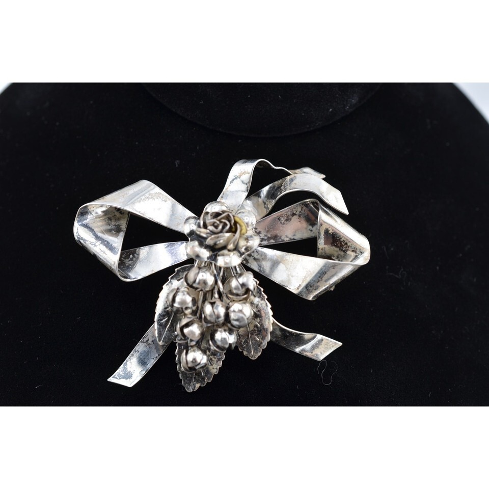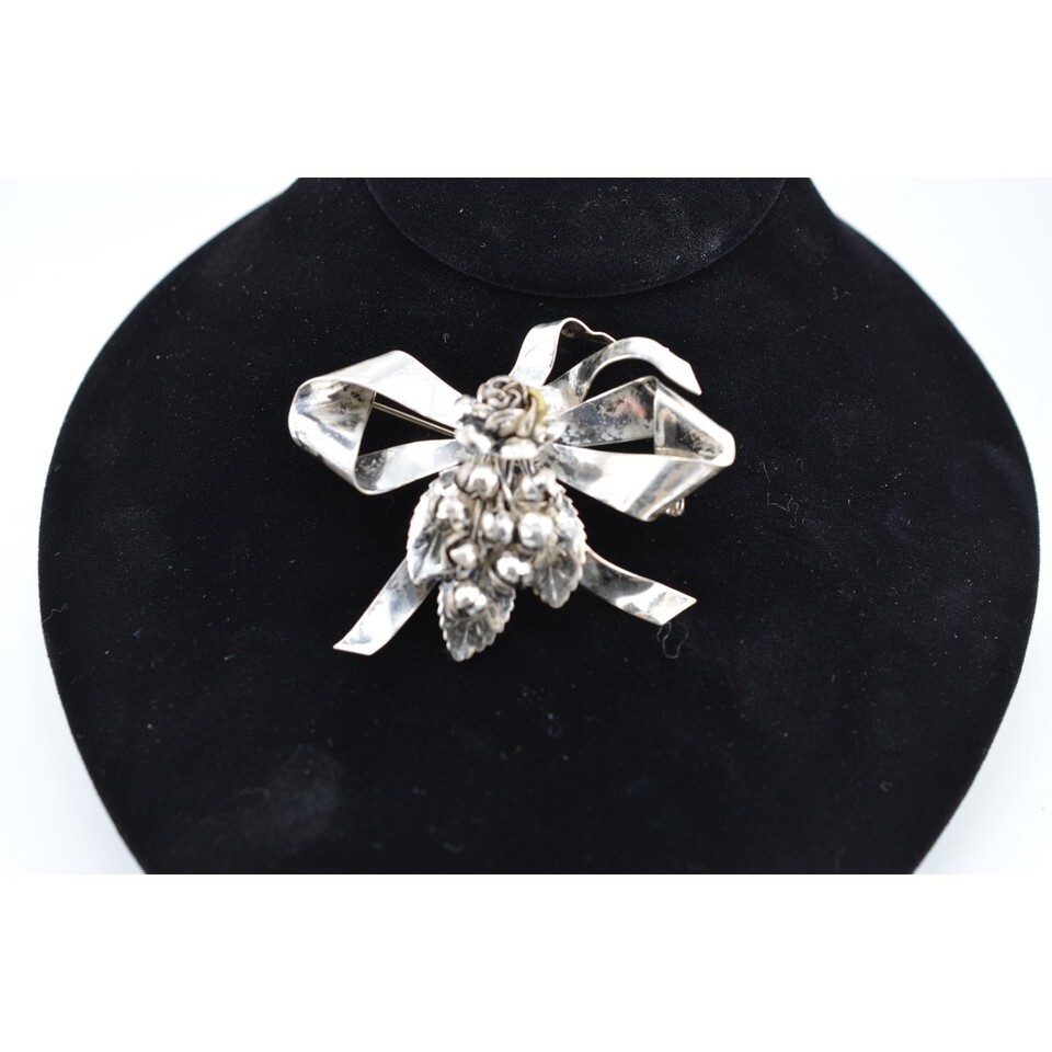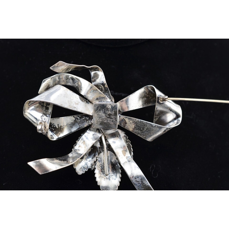 Vintage Signed Hobe Sterling Silver Large Floral Bow 1940's Brooch