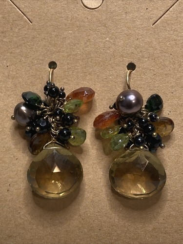 A GIFT BOX AND BAG WILL BE INCLUDED WITH EVERY ITEM PURCHASED DURING THE HOLIDAY SEASON.These earrings have been attributed to Nadine Ifrah Leo and her daughter Maya Ella Nelson who own the Mississippi River Pearl Jewelry, Co, est. 1982. Nadine traveled the American Rivers acquiring natural pearls, especially the upper Mississippi River. Nadine has supplied many of the finest jewelers around the world including Tiffany Co, Harry Winston, Mikimoto, etc. She sold a 24mm Mississippi River Pearl to Queen Elizabeth's jeweler that was subsequently used in Princess Diana's Ring. Earrings have Mississippi river pearls and semi-precious gems. They measure 1-inch long and 0.5 inches wide. A very rare set.Stop by our Shop and see all the Sale Items.