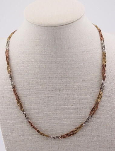 A GIFT BOX AND BAG WILL BE INCLUDED WITH EVERY ITEM PURCHASED DURING THE HOLIDAY SEASON.This is a beautiful vintage 925 Italy sterling silver two-tone flat braided necklace. It measures 16 inches in length and weighs 19g. In very good condition. A perfect addition to any jewelry collection.