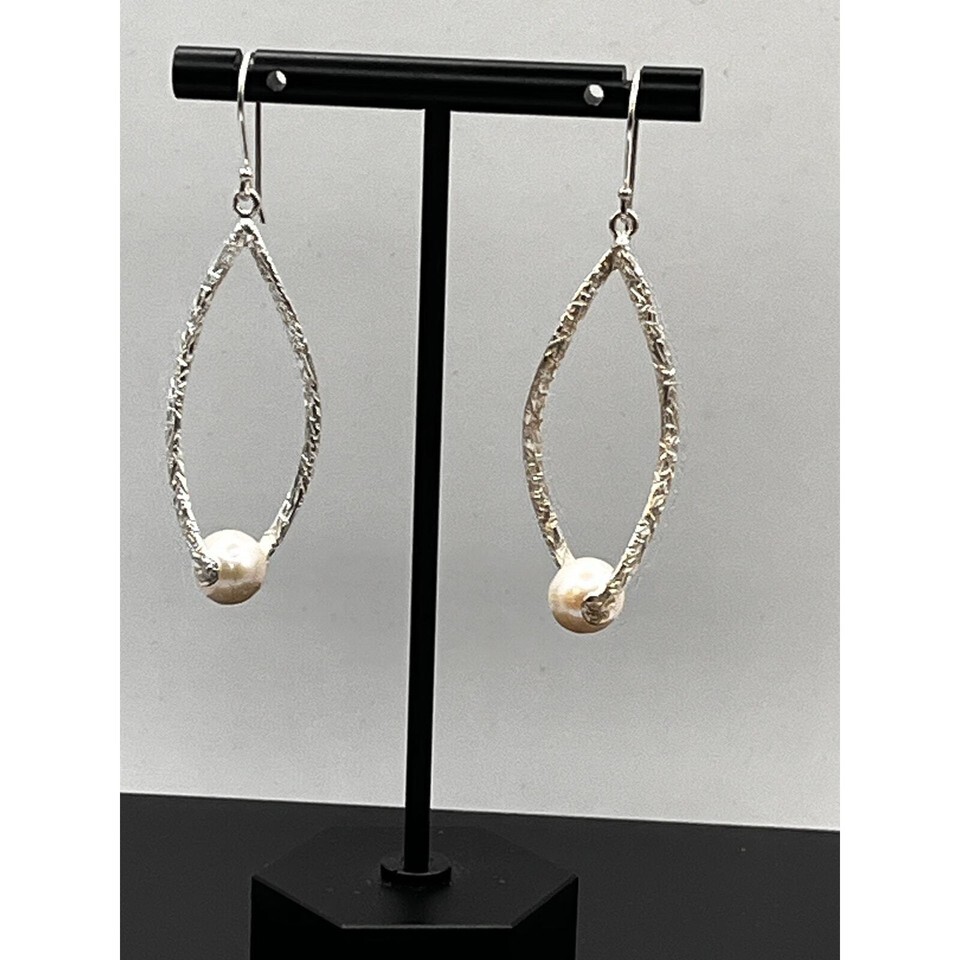 A GIFT BOX AND BAG WILL BE INCLUDED WITH EVERY ITEM PURCHASED DURING THE HOLIDAY SEASON.Beautiful sterling silver earrings with round pearls measuring 2.25 by 0.75 inches. They make a great addition to your collection. Made by Milor Italy.