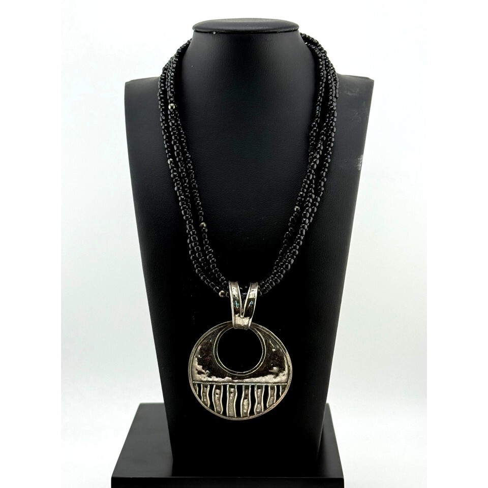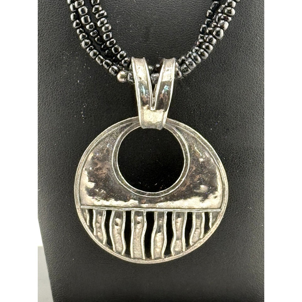 A GIFT BOX AND BAG WILL BE INCLUDED WITH EVERY ITEM PURCHASED DURING THE HOLIDAY SEASON.Gorgeous sterling silver pendant on black seed bead multi-strand necklace. Pendant measures 2.75 inches including connector. Necklace is 15 inches with a 2 inch extender. This is a stunning piece.