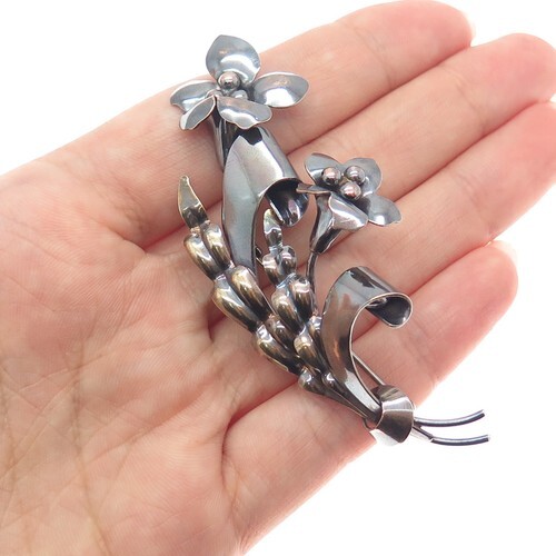 A GIFT BOX AND BAG WILL BE INCLUDED WITH EVERY ITEM PURCHASED DURING THE HOLIDAY SEASON.Gorgeous 12K (stamped) gold filled on silver brooch elaborately shaped flowers and bowtie. Amazing detail on this piece. Measures approx. 2.25 inches by 1.8 inches. A beautiful wearable artwork.