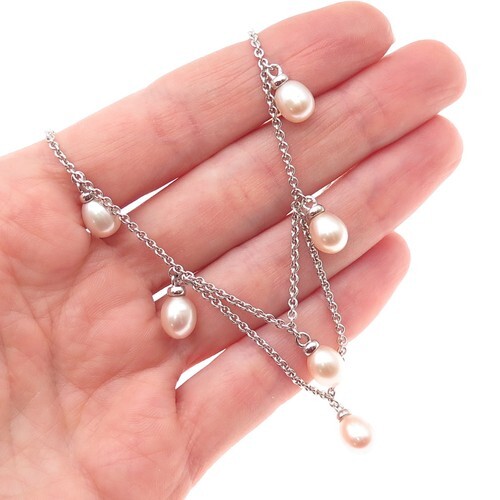A GIFT BOX AND BAG WILL BE INCLUDED WITH EVERY ITEM PURCHASED DURING THE HOLIDAY SEASON.A beautiful vintage necklace featuring iridescent pearls with beautiful silver closure. The pearls are in a cluster form that looks elegant. The clusters are about 0.75 inches. This treasure measures about 20 inches. A beautiful addition to your vintage collection.
