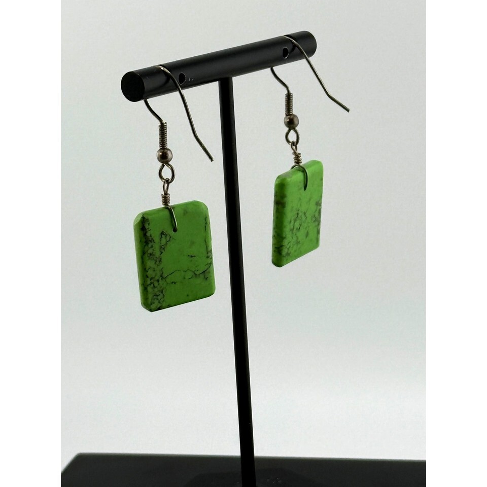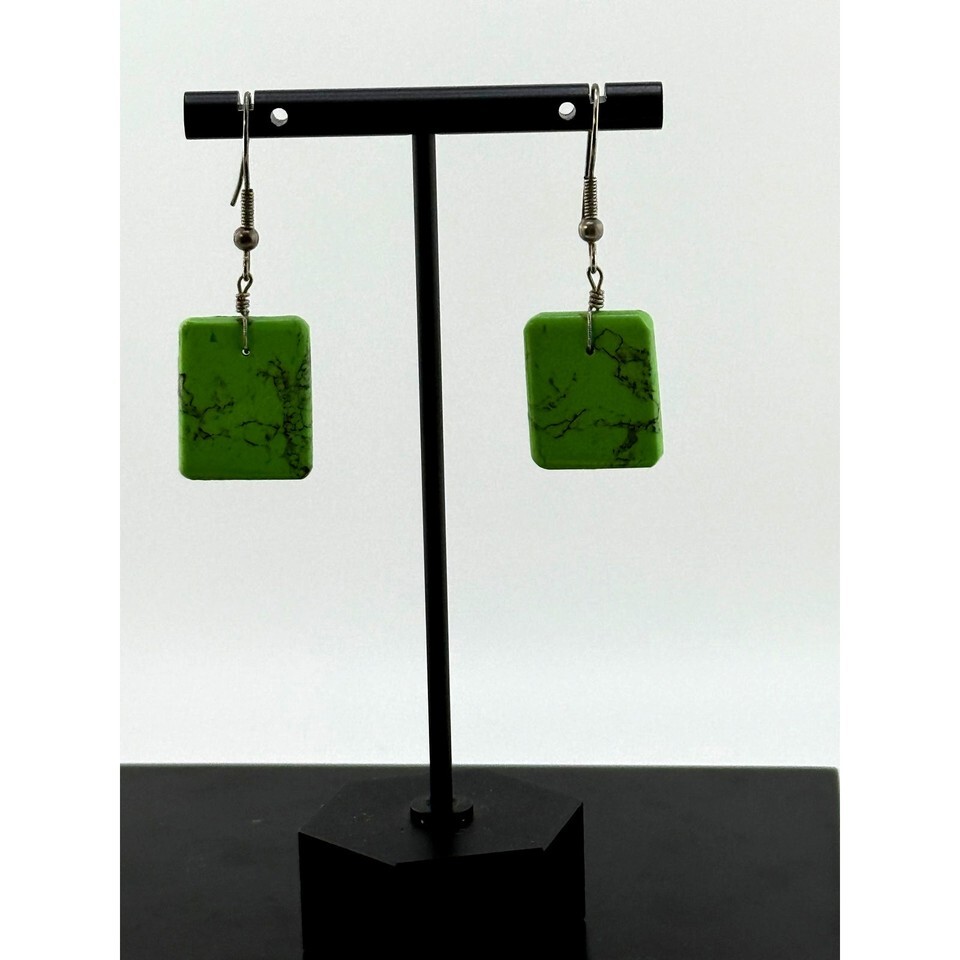 A GIFT BOX AND BAG WILL BE INCLUDED WITH EVERY ITEM PURCHASED DURING THE HOLIDAY SEASON.Beautiful vintage earrings with square gaspeite measuring approx. 0.75 inches. These are French wires in 925 sterling silver. Measure 1.75 inches in length and 0.75 inches wide. These could be worn with any outfit, casual or dressy.
