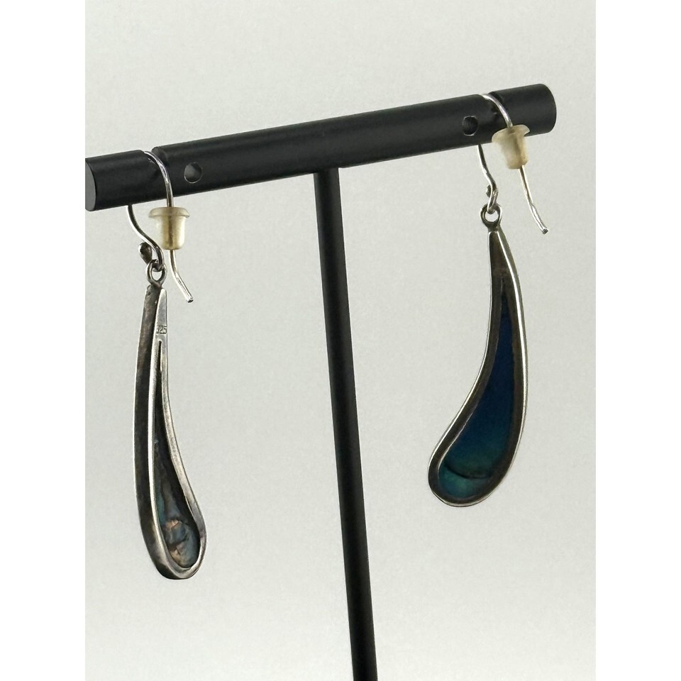 A GIFT BOX AND BAG WILL BE INCLUDED WITH EVERY ITEM PURCHASED DURING THE HOLIDAY SEASON.Curved teardrop shaped with 2 inch drops and approx. 0.25 inches wide. With lovely sterling silver highlighting the deep blue stones, these are a beautiful pair to wear with any outfit.
