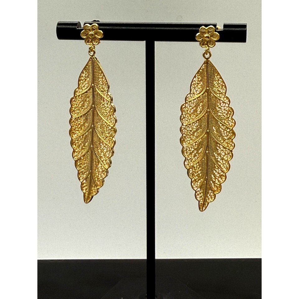 Portuguese Gold Plated Sterling Silver Filigree Leaf Earrings