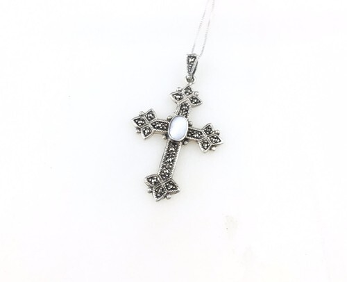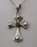 Beautiful sterling pendant and chain measuring approx. 19 inches. Cross pendant measures 1.50 inches by 1 inch. In very good condition. Maker's mark "PSCL" wonderful addition to your collection.