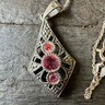 Sterling silver pink rhinestones marcasite pendant necklace