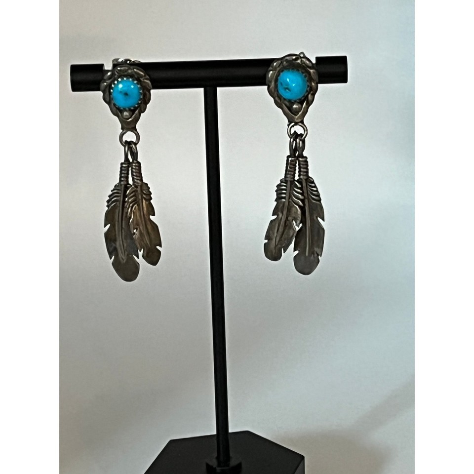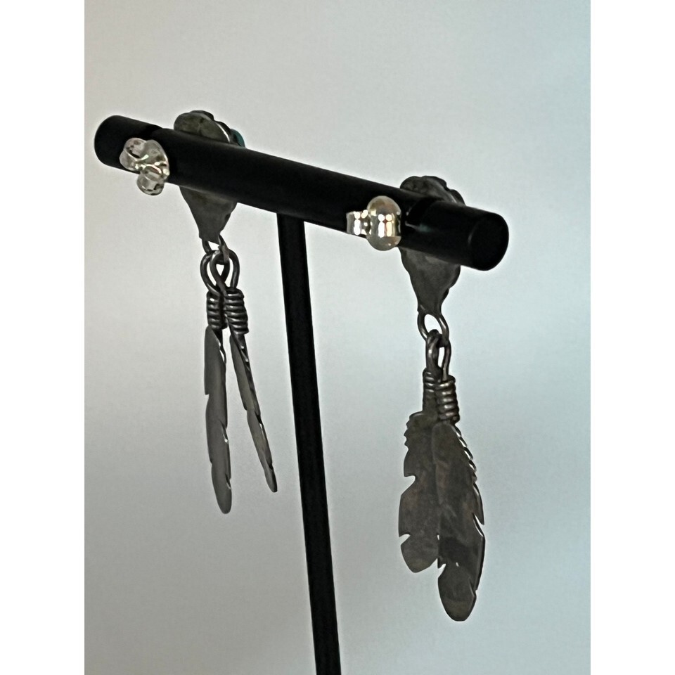 Vintage Sterling silver Southwestern turquoise dangling feathers earrings