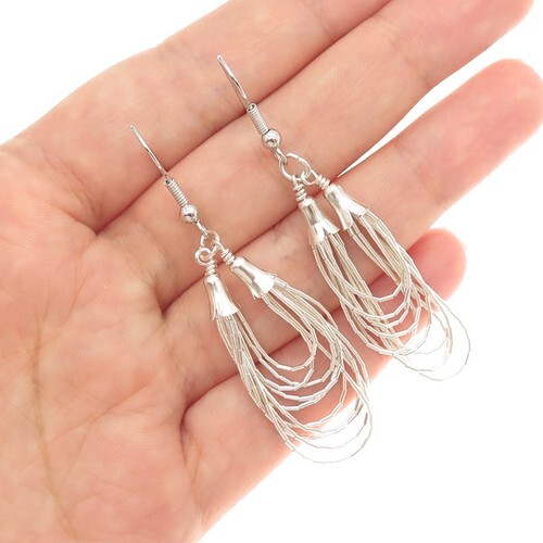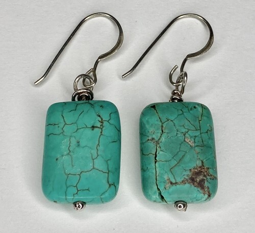 A GIFT BOX AND BAG WILL BE INCLUDED WITH EVERY ITEM PURCHASED DURING THE HOLIDAY SEASON.Sterling silver almost round shape turquoise dangling feathers push back earrings. Weight 7.57 grams. Length 2 inches. No hallmark, tested 925 sterling silver. Condition very good.