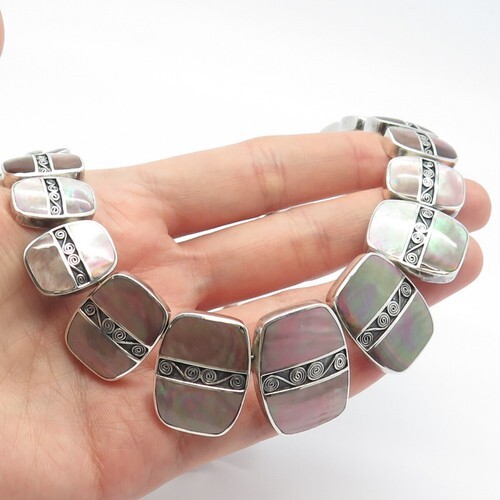 Rare Aceloni Vintage sterling mother of pearl, black onyx inlay signed