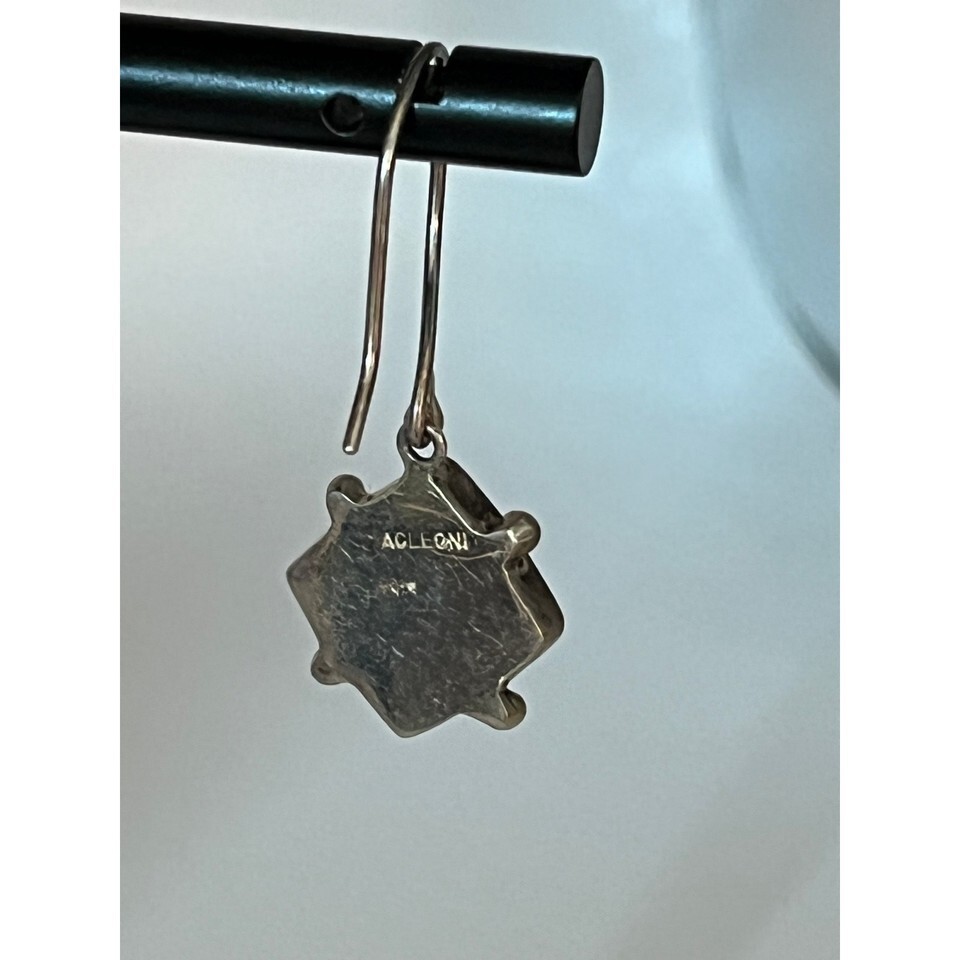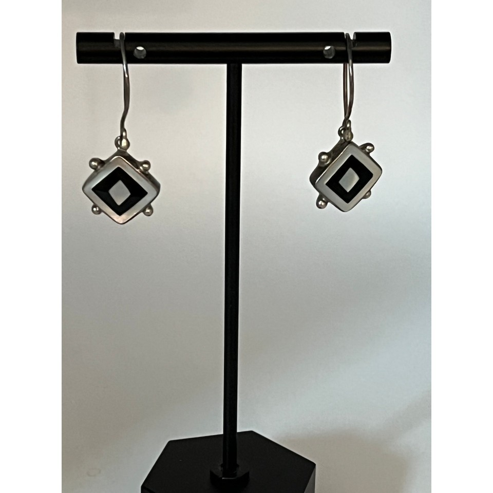 A GIFT BOX AND BAG WILL BE INCLUDED WITH EVERY ITEM PURCHASED DURING THE HOLIDAY SEASON.RARE, ACLEONI vintage sterling silver white mother of pearl, black onyx inlay fish hook earrings, signed. Weight 5.24 grams. Length 1 1/2 inches. Hallmarked Acleoni, 925. Condition very good.