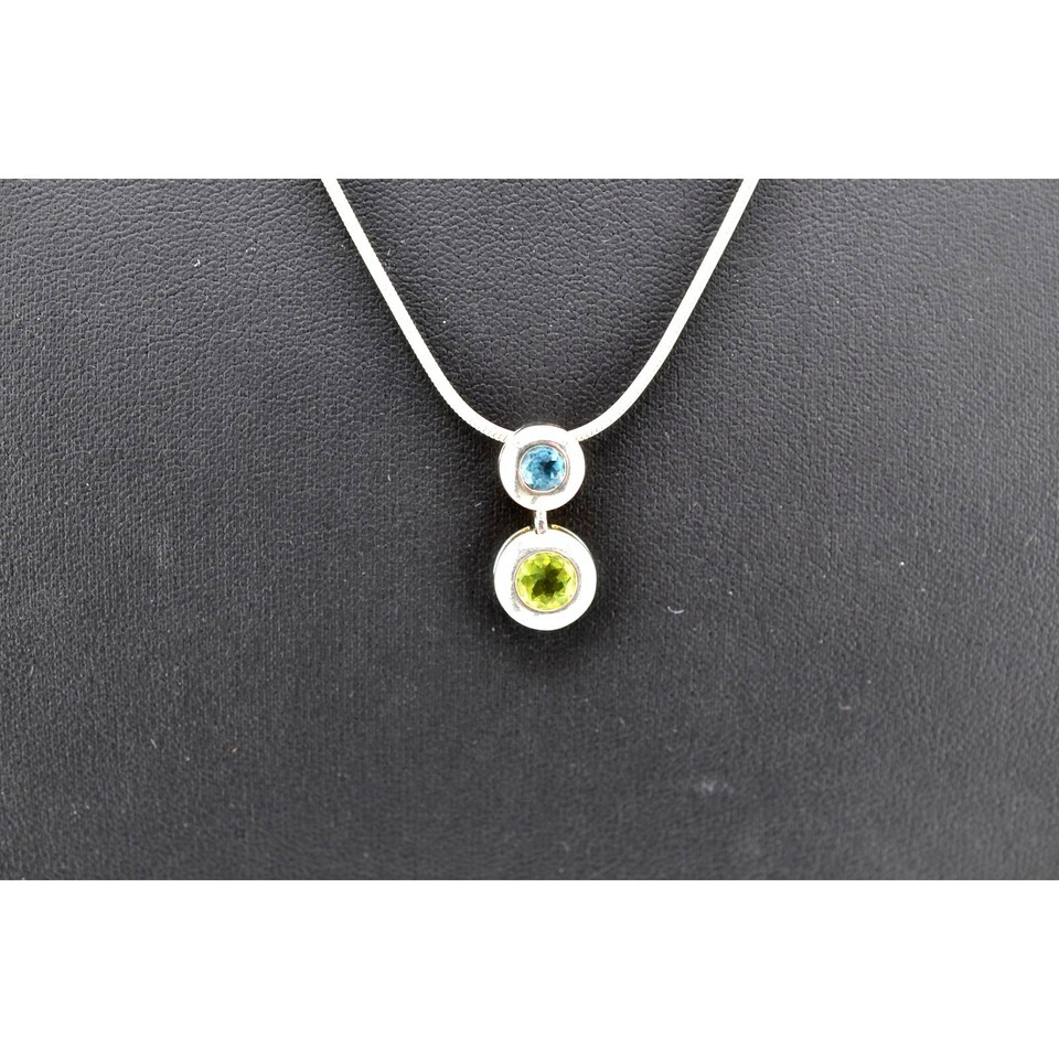 Vintage 925 Italy Sterling Silver Gemstone Pendant Necklace