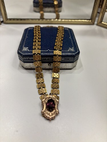 A GIFT BOX AND BAG WILL BE INCLUDED WITH EVERY ITEM PURCHASED DURING THE HOLIDAY SEASON.This item includes 7 lines of faux Garnet beads with brass fitments. A double pendant with 44 faux diamonds and 12 small faux red garnets. 14" + 2.5" chain with lobster claw.