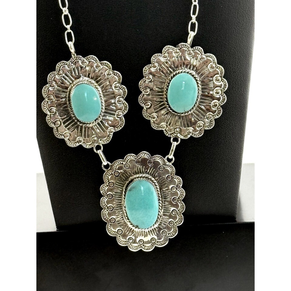 Navajo Sterling Silver Turquoise Necklace By and 50 similar items