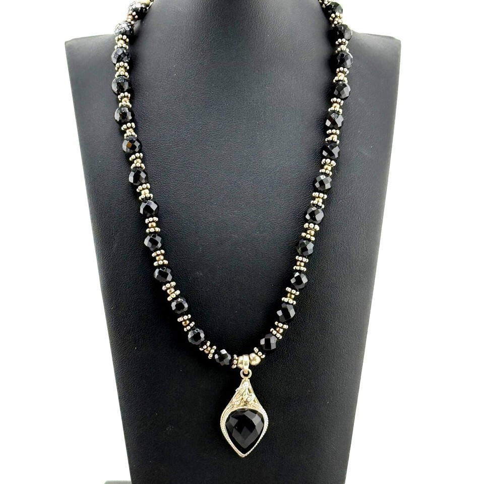 Vintage Sterling Silver Onyx Beaded Pendant and 50 similar items