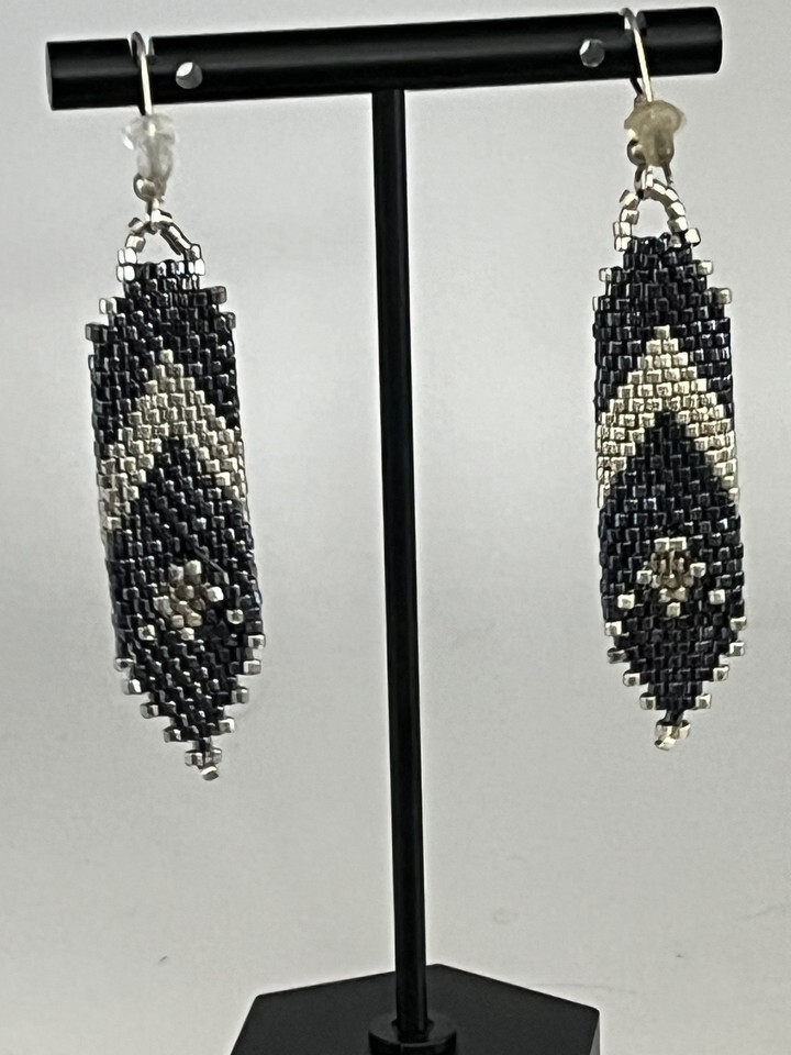Vintage Two Tone Blue Silver Beaded Earrings