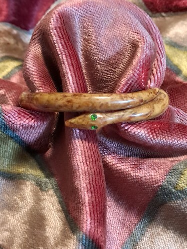 RARE Vintage Bovine Bone Carol For Eva Graham Carved Bangle Bracelet