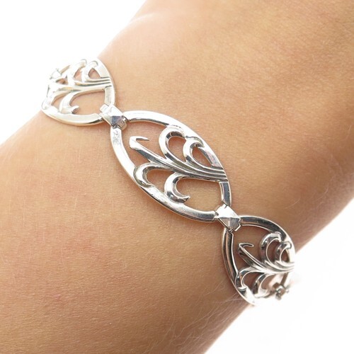 A beautiful and rare vintage bracelet measuring approx. 7.5 inches and 1" wide. Tagged "Carol for Eva Graham". It has wear typical of its age. A beautiful example to add to your collection.