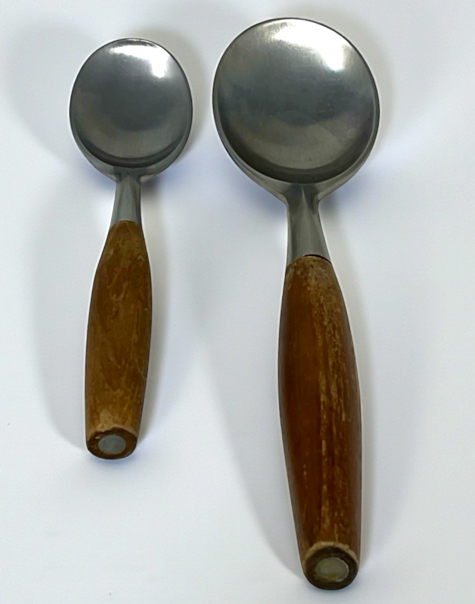 Vintage Dansk FJORD 9" Serving Spoon & 7" Spoon Teak Handle Stainless Steel