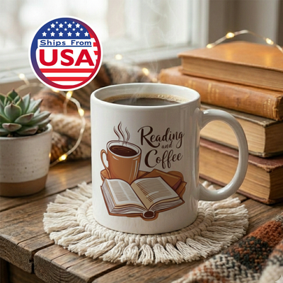Warm, simple, and made for slow mornings ? this ceramic mug pairs the quiet joy of a fresh cup with the comfort of a good book. Illustrated in warm browns and soft lines, the design shows a steaming mug beside an open book, evoking curled-up reading sessions, coffee shop corners, and pages turned between sips. The glossy white ceramic makes the artwork pop while keeping the piece easy to clean and safe to heat. It?s the kind of mug that lands on your kitchen counter, follows you to the sofa, and becomes part of your daily ritual.