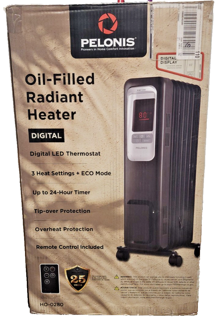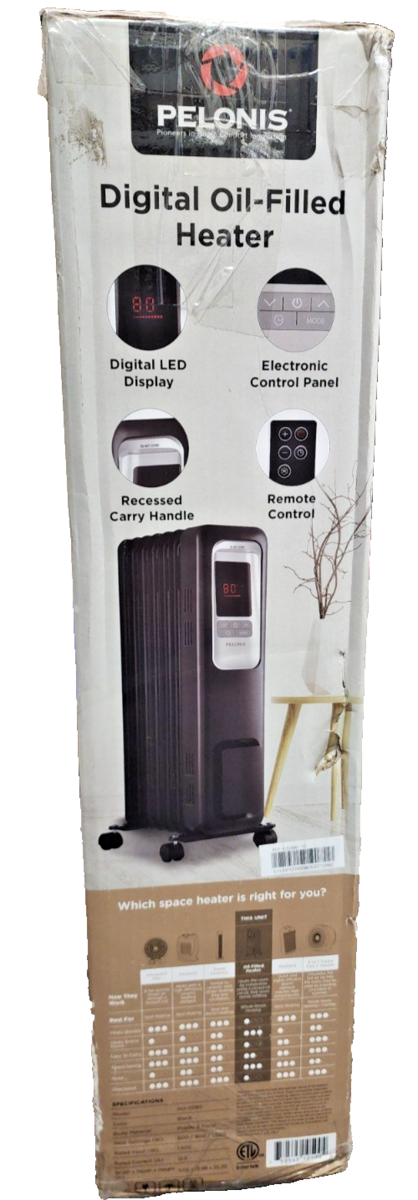 PELONIS Oil-Filled Radiant Heater Digital Thermostat 3 Settings New - NO REMOTE