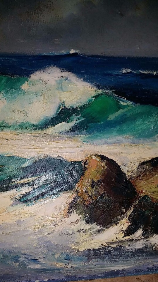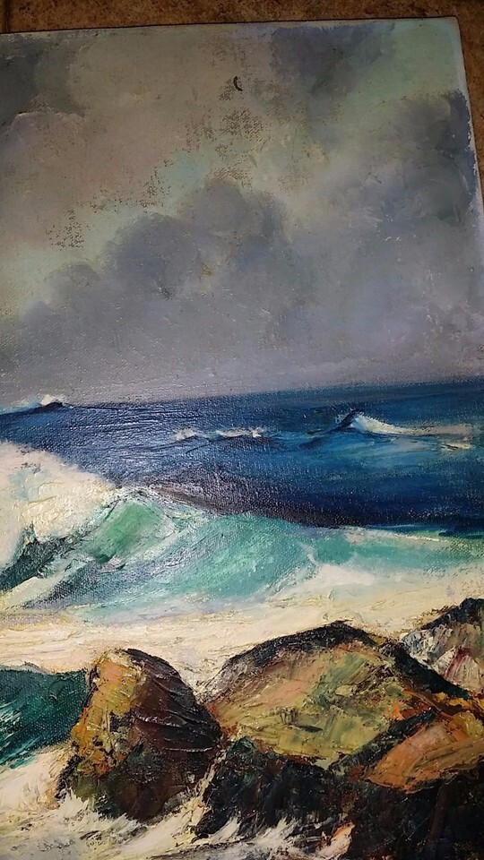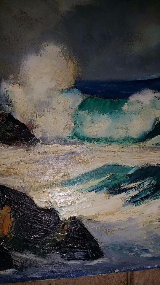 Signed ORIGINAL Oil or Acrylic Painting of Ocean Waves Crashing on Rocks 16"t x 20"w canvas