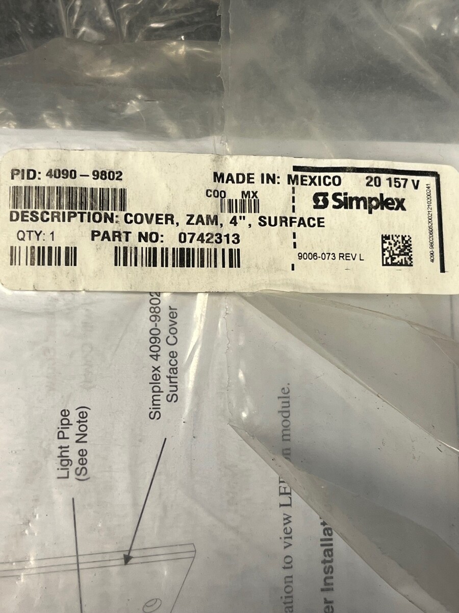 Simplex 4090-9802 4" Surface Cover ZAM Relay 0742313 New