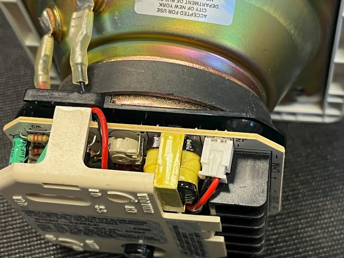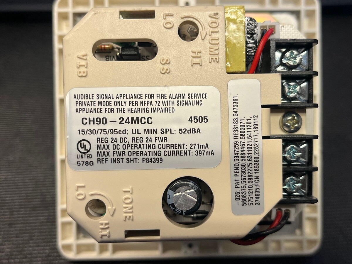 Wheelock CH90-24MCC 24V fire alarm coded horn, sold strictly for parts or repair. This commercial-grade audible appliance delivers 90dB continuous, coded, or temporal patterns for emergency evacuation signaling in schools, offices, warehouses, or hospitals?ideal for techs needing donor horns, drivers, grilles, or mounting hardware.