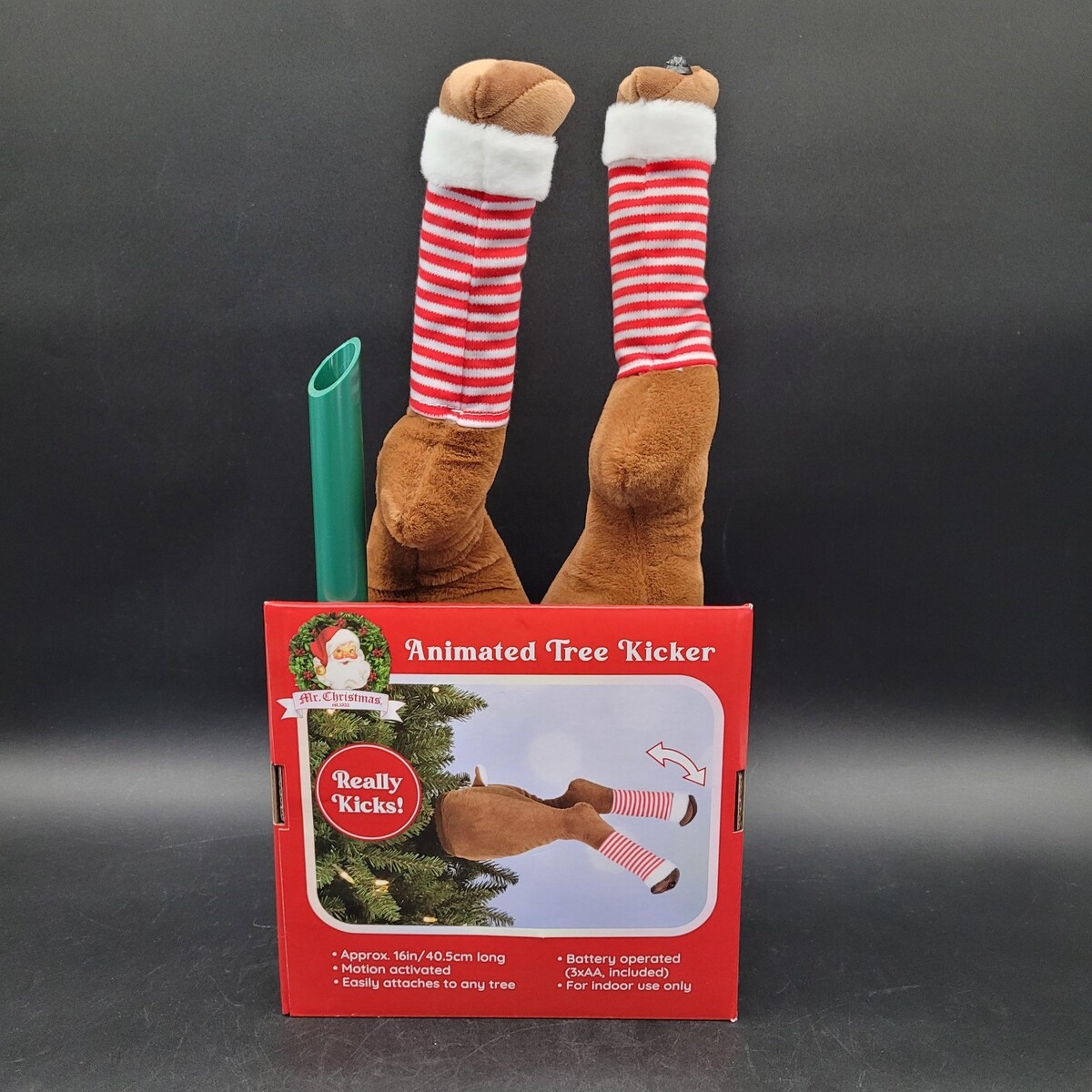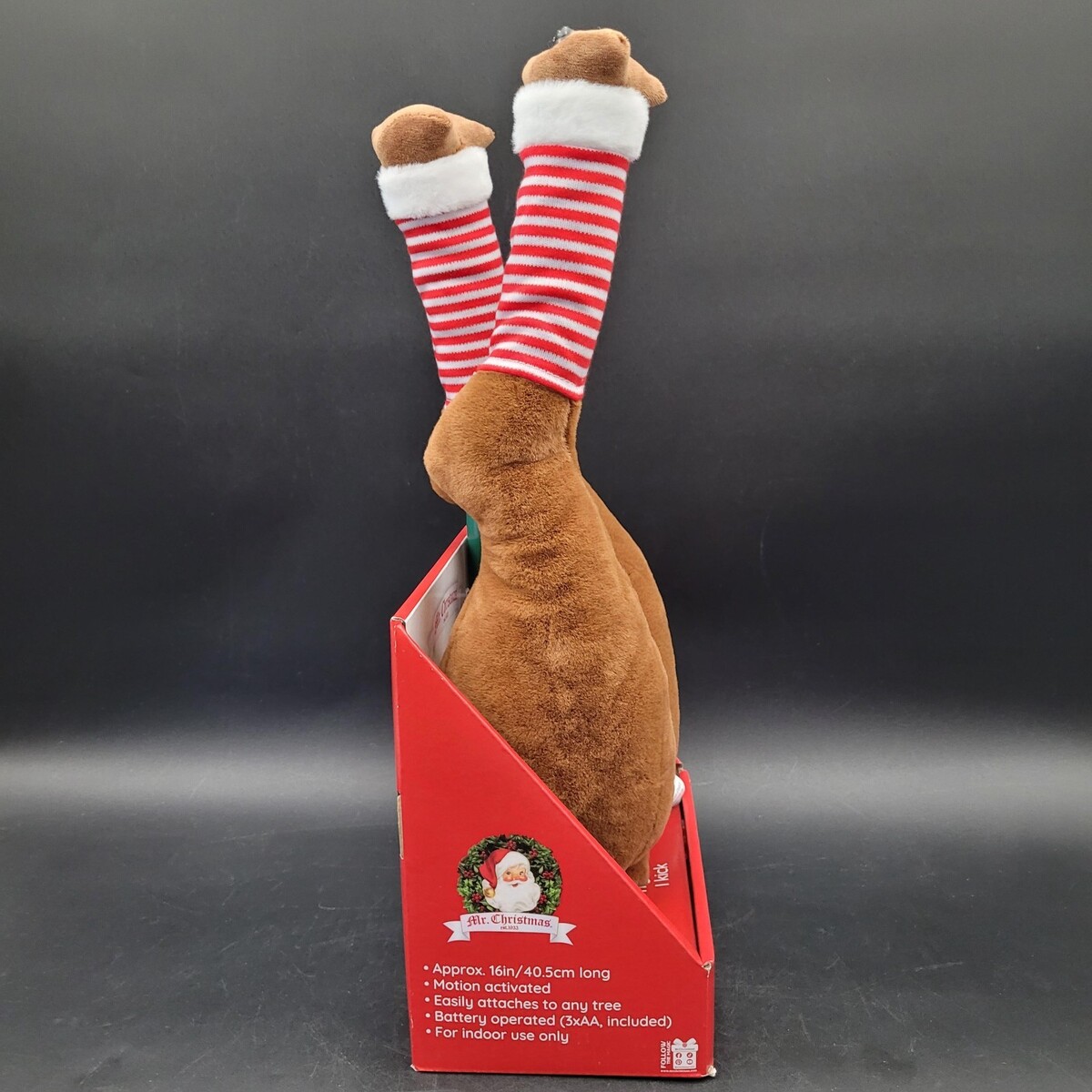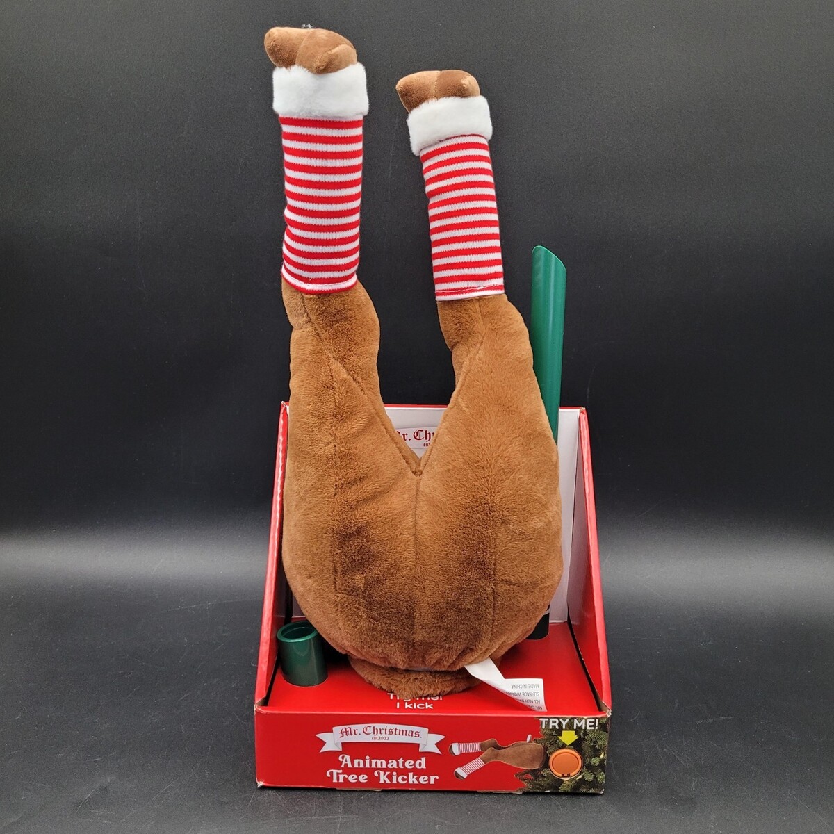 Rare New Mr Christmas Holiday Reindeer Tree Kicker Motion Activated Kicking Legs
