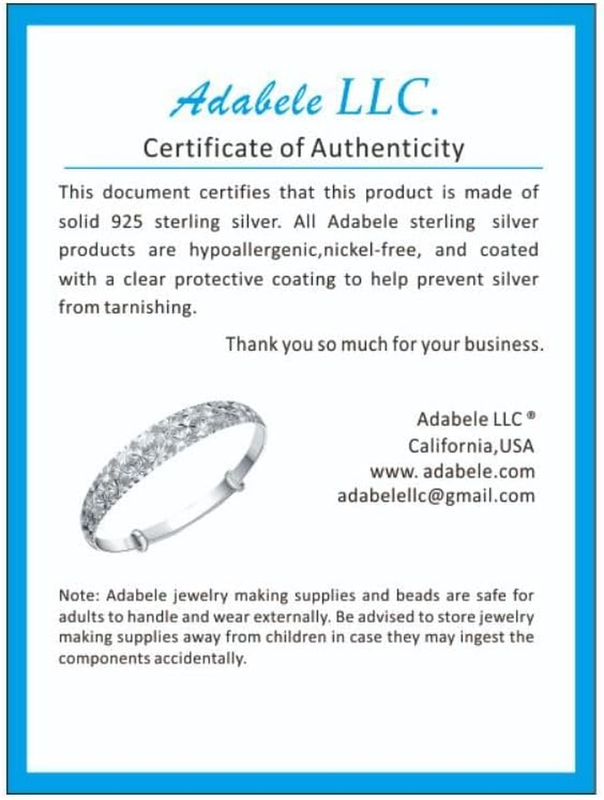 A material and quality assurance certificate of these real 925 sterling silver products issued by Adabele, USA is included; These Items are packaged into Adabele's trademarked bag