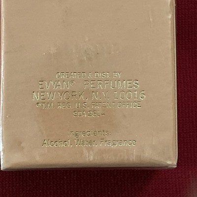 The product is a vintage discontinued White Shoulders by Evyan cologne spray, measuring 2-1/4 fluid ounces. It is sealed in its original box with cellophane, making it a collectible item for those interested in commercial miniatures. The brand, White Shoulders, is known for its classic fragrance, and this sealed NOS (new old stock) cologne spray would be a valuable addition to any vintage perfume collection.