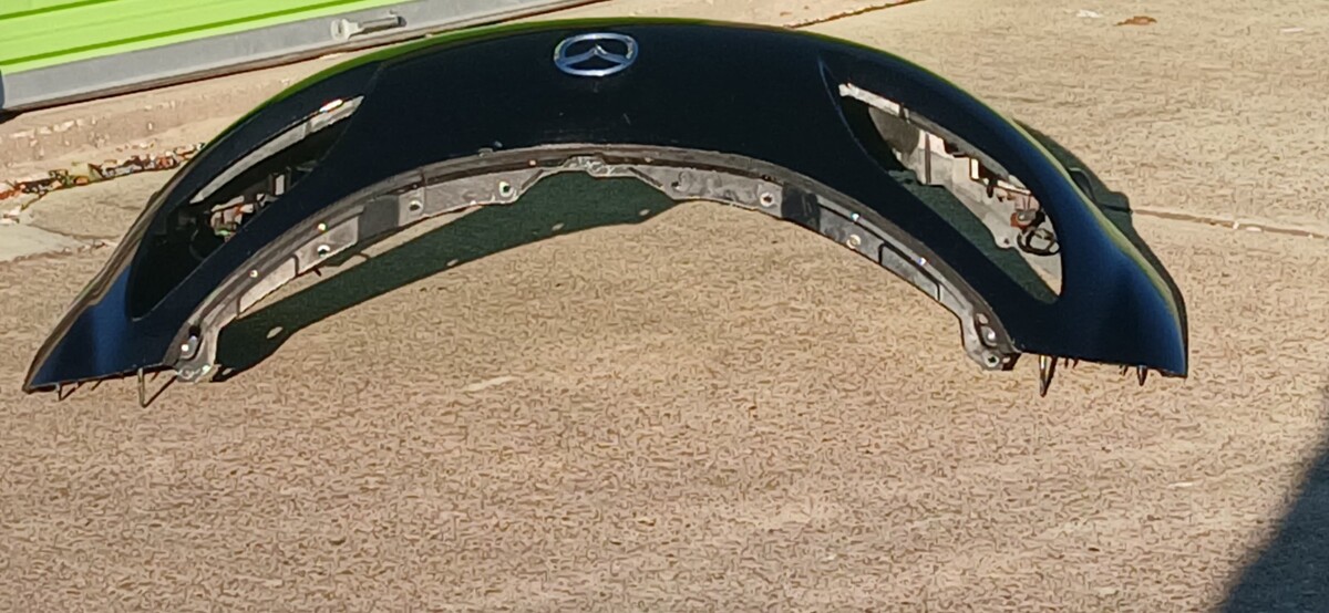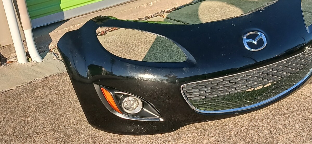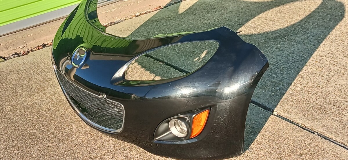 Bumper removed from a 2010 Mazda miata mx-5 it does have scratches, scuffs, broken grill ( Grill will need to be replaced) and the right side back panel was re-attached back to the front cover as you can see the some of the silicon at the back, and it comes with both fog lights as pictured