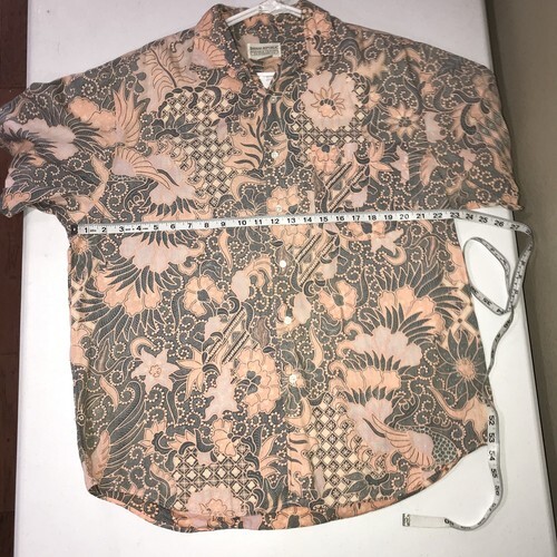 You are buying a Banana Republic Mens Medium Short Sleeve Button-Front Red Pink Floral Shirt