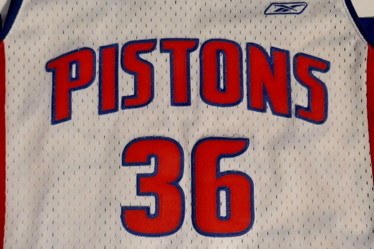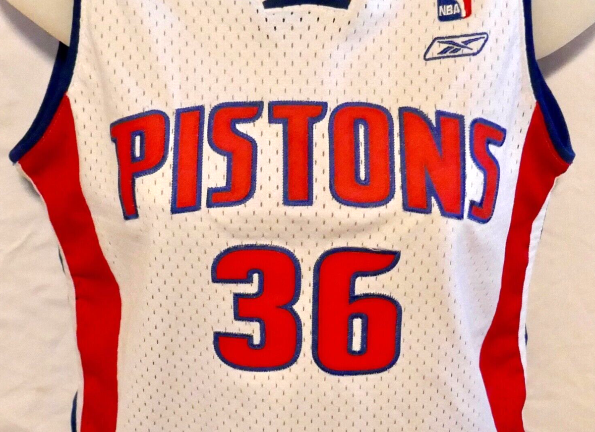 Show your love for the Detroit Pistons with this Reebok Wallace 36 Basketball Jersey Tank Top Shirt. The shirt is available in size S and measures approximately. 16.5" from pit to pit and 24" long. Add this jersey to your collection or wear it to the next game to show your support for the Detroit Pistons. Also included is a small Detroit Pistons Basketball pin.