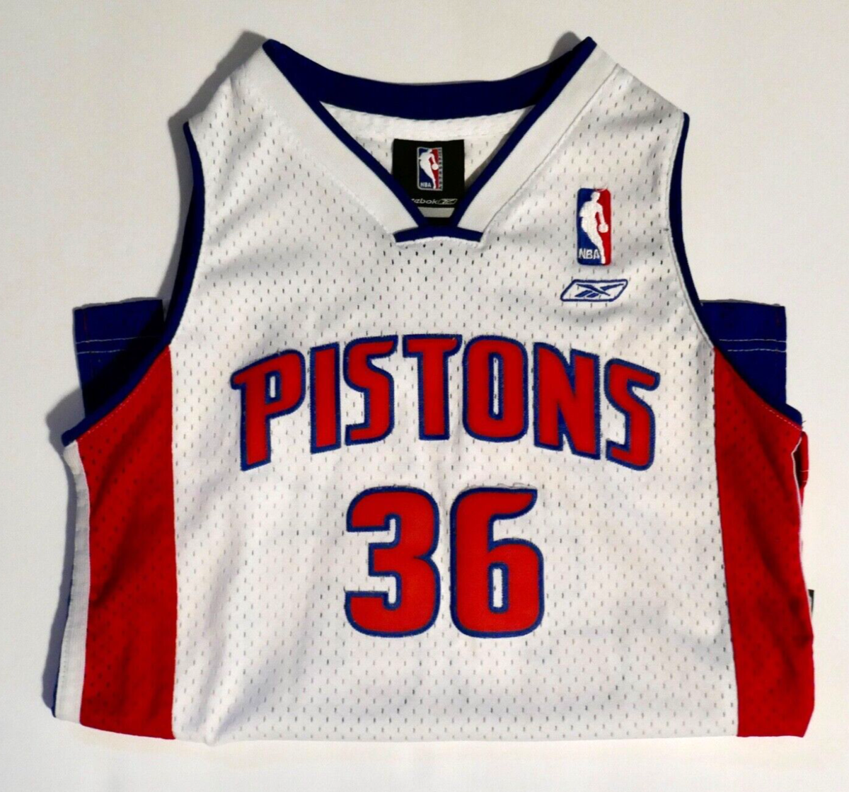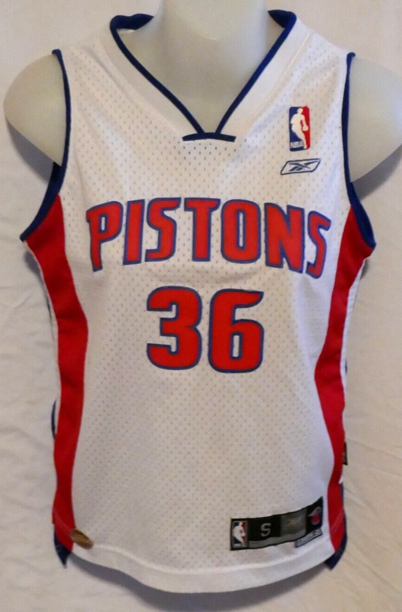Reebok Detroit Pistons Wallace 36 Basketball Small Jersey Tank Top Shirt w/Pin