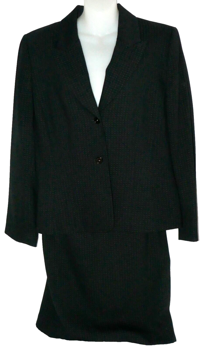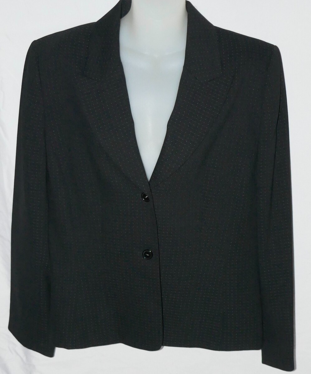 Tahari 2-Piece Black with Micro Dots Jacket Sport Coat Pencil Skirt Suit Size 14