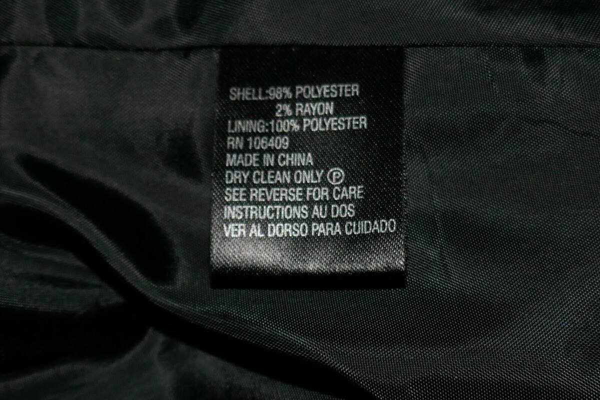 Elevate your professional wardrobe with the Tahari 2-piece skirt suit, a perfect blend of sophistication and comfort for any business or formal occasion. The ensemble features a sleek black Tahari jacket with a timeless notch lapel style and a pencil skirt to match, both adorned with a subtle micro polka dot pattern that adds a touch of elegance. The jacket's single-breasted, two-button front provides a classic silhouette, while the long sleeves without buttons give a modern edge. This measures approx. 22" from pit to pit and 25" long with 25" sleeves. The skirt measures approx. 16". across the waist and 24.5" long.