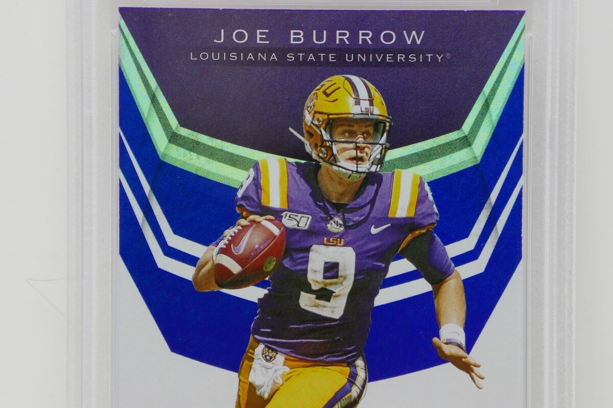Up for sale is a 2020 Panini Chronicles Draft Picks #1 Joe Burrow Rookie Trading Card. This has been graded by PSA.